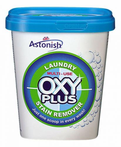 Среди продукции более дорого класса стоит выделить Astonish OXY PLUS. Это средство британского производства обладает одним из самых сильнодействующих составов. Он содержит такие компоненты, как пероксигидрат карбоната натрия и соду, которые позволяют удалять пятна даже от плесени, крови, масел, жира. Средство может использоваться для чистки одежды, брезента, мебели, плитки и прочего.