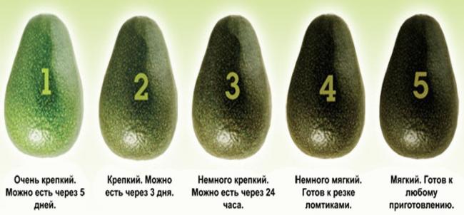 Прежде чем определиться со способом хранения купленного фрукта, оценивают степень его спелости: мягкий на ощупь, коричневого цвета плод – зрелый, его нежелательно хранить. Срок годности такого авокадо – 24 часа с момента покупки. Чаще на прилавках встречаются ярко-зеленые, твердоватые фрукты, которым требуется еще некоторое время, чтобы дозреть.