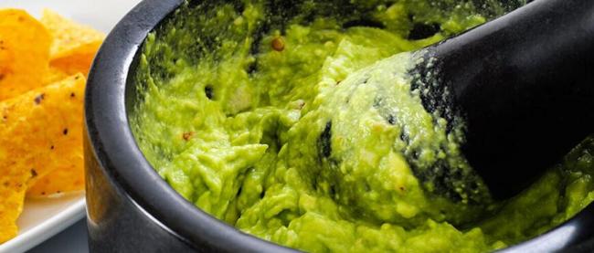 - Приготовьте блюдо: раздавите зубчик чеснока, зеленый перец чили и соль в ступке с помощью пестика, добавьте авокадо с соком лайма и хорошенько взбейте.
