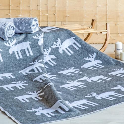 - Двуспальное – 200х220 см. Рассчитан на двух взрослых, может выполнять функцию покрывала. Полотно с добавлением шерсти в таком размере будет достаточно тяжелым. Чаще всего дизайн представляет собой геометрические фигуры, растения, животные принты.