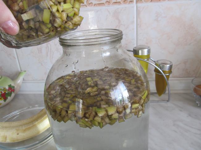 - Поместить свежее, мелко нарезанное сырье в банку.