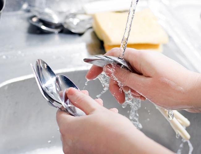 Благодаря тому, что средство эффективно против жира, им очищают и дезинфицируют посуду, столовые приборы. Для этого кухонную утварь нужно оставить в 10-ти процентном растворе средства, через полчаса помыть в проточной воде и насухо вытереть.