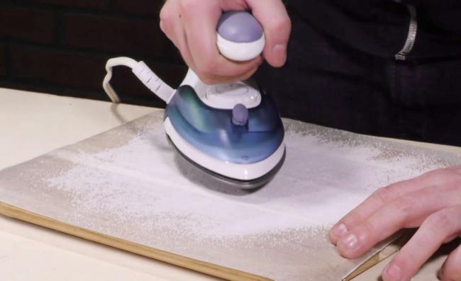 Нанесите немного зубной пасты на теплую гладильную поверхность.