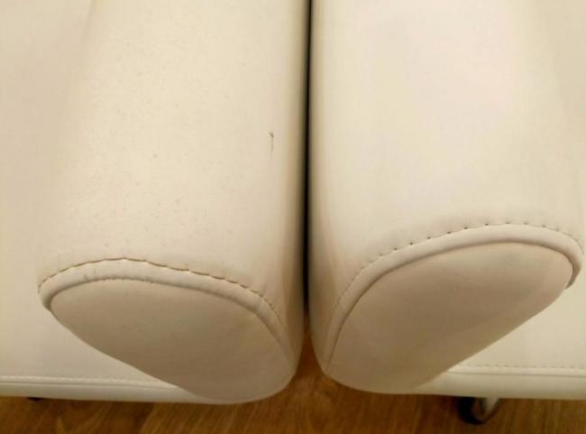 Белую экокожу нужно мыть специальными средствами и мягкой тряпочкой