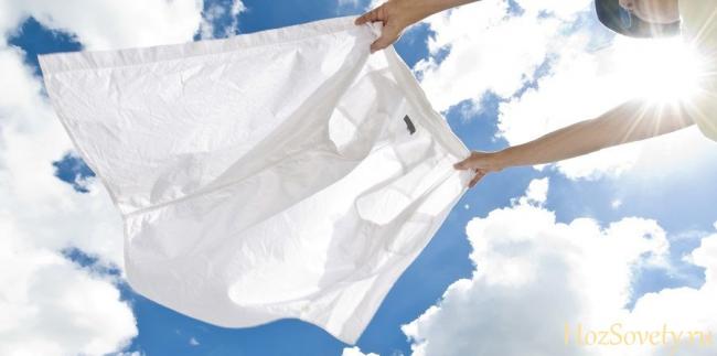 - Испачканные места на льняных, бамбуковых и хлопковых (исключая батист) вещах, можно обесцветить хлорсодержащими отбеливателями, типа «Доместоса» или «Белизны». Средством локально обрабатывают пятно, а через минуту смывают большим количеством прохладной воды. Кроме того, предметы гардероба можно полностью замочить на 20 мин в отбеливающем составе (на 10 л воды 2 ст. л. средства).