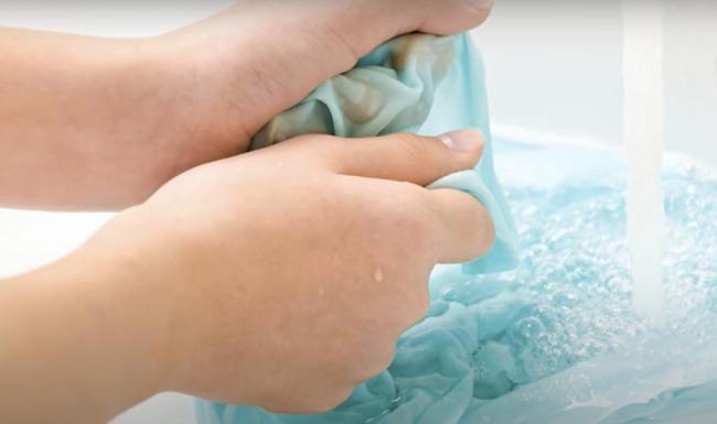 - Опустите вещь в раствор целиком. Оставьте отмокать на 1–2 часа.