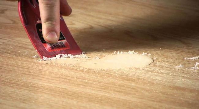 Как очищать монтажную пену с линолеума после его укладки? Если она свежая, её собирают шпателем и удаляют. Застывшую пену срезают аккуратно острым ножом, а её остатки обрабатывают предназначенными для этих целей средствами.