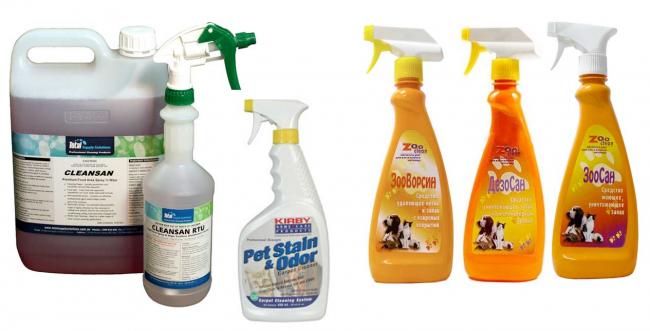 В зоомагазинах можно найти средство от запаха в виде спрея, жидкости или специальных гранул с желе. С их помощью получится полностью избавиться от «амбре» мочи вашего питомца, а также отмыть лоток. Главное, внимательно изучить инструкцию перед применением.