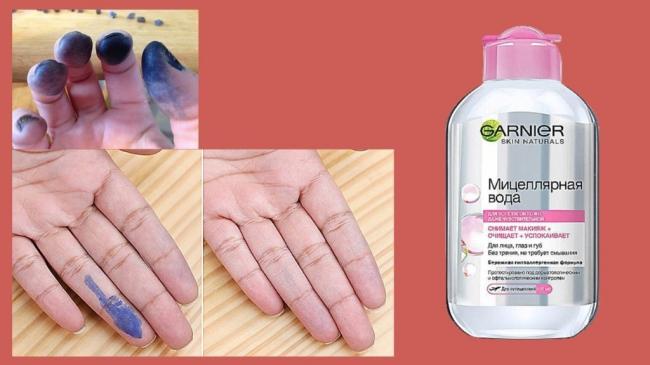 Руки, измазанные чернилами, моют с мылом. Оставшиеся следы обрабатывают водкой, одеколоном или спиртосодержащими тониками. Чтобы удалить миниатюрные брызги, берут лак для волос, смывку или ацетон. После исчезновения краски тело протирают спиртосодержащими гигиеническими салфетками, смазывают жирным кремом.