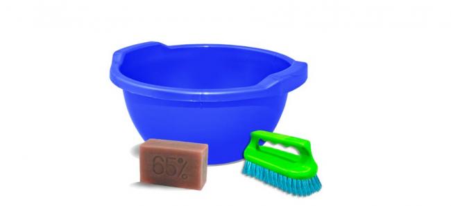 - Натереть пятно хозяйственным мылом и замочить на несколько часов в густом мыльном растворе.