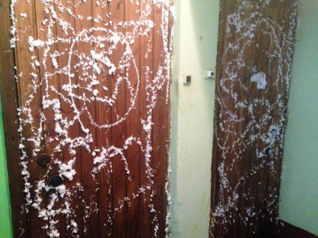 Попадание пены на металлические двери редко грозит непоправимыми последствиями, так как особенности ее поверхности позволят успешно удалить даже засохшие пузырьки. Более проблематичным является удаление таких загрязнений с деревянных или пластиковых дверей. В этом случае придется смириться с тем, что досадно попавший на двери полиуретан навсегда вносит дополнительные штрихи в фактуру поверхности.