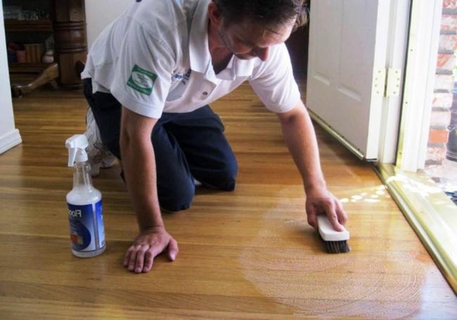 - Перед тем как приступить к выведению пятна, жидкость для снятия лака тестируют на небольшом участке напольного покрытия.