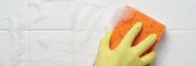Очищающую жидкость необходимо нанести на плитку, а затем через определенное время снять с помощью губки.