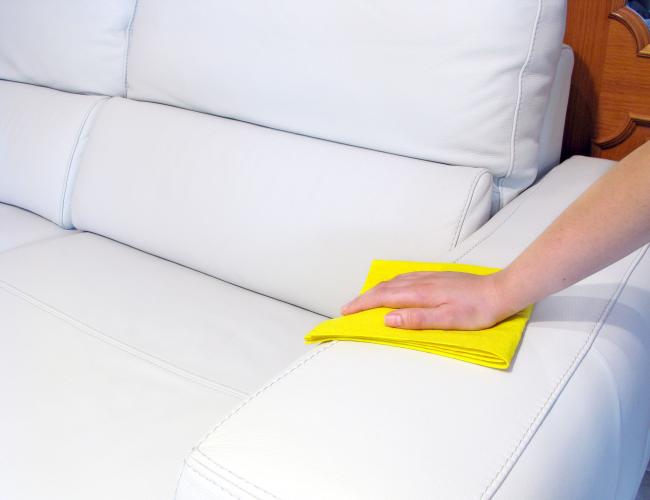 - Покрытую пылью белую кожу рекомендуется протирать влажной тканью.