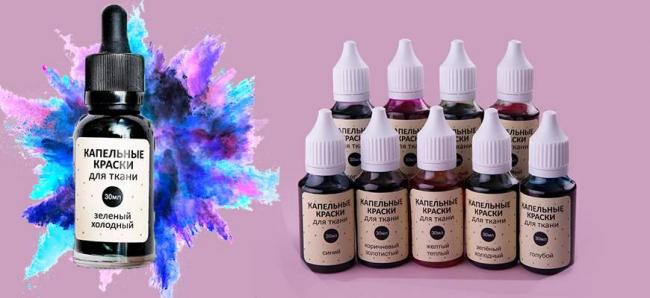 - Анилиновые. Используются только для натуральных тканей, синтетику не берут. Их применяют при использовании техники батик или градиент, когда ткань постепенно опускают в жидкость, чтобы нижняя сторона окрасилась сильнее, чем верхняя.