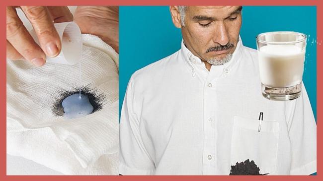 - Подогреть до температуры 50°С молоко. Участок с пятнышком замочить в молоке. Пятно должно раствориться. Этот способ практикуется лишь со свежими пятышками.