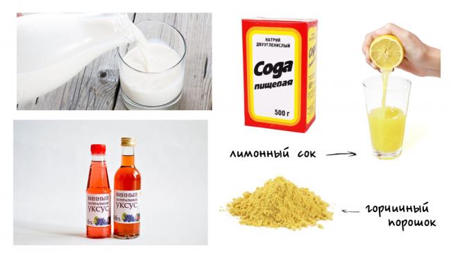 - Кухонные средства. Их несложно найти в любом кухонном шкафчике или на полочке ванной комнаты: куриные яйца, щавелевая или уксусная кислота, соль.