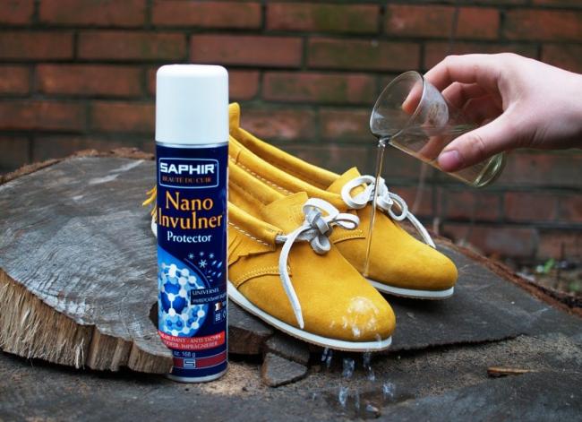 Обрабатывать водоотталкивающими аэрозолями для обуви