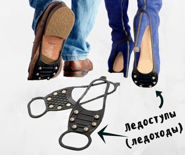 - На зимнюю обувь рекомендуется установить защиту с высокими износостойкими и теплоизоляционными характеристиками. Такие меры также предотвратят скольжение на гладкой поверхности в гололед.
