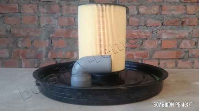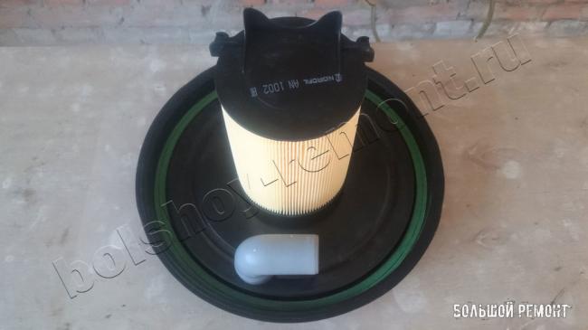 Фильтр должен плотно прилегать к крышке, иначе грязный воздух будет попадать в выходной патрубок.