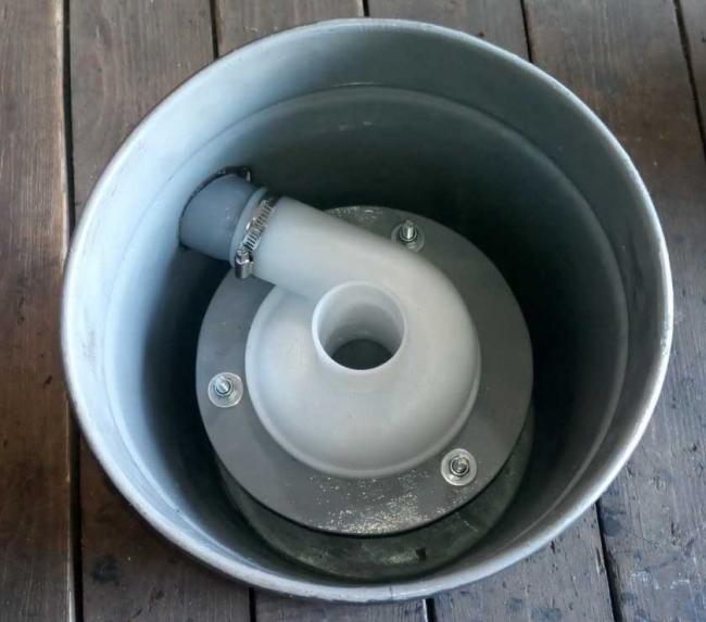 Надо иметь в виду, что при закрытии входного отверстия, ведро может дать трещину. Поэтому надо укрепить стенки ведра, каким-либо способом, или предусмотреть что-то вроде клапана. Главное, в этом деле не спешить, замерять все соединения, и тогда у вас все получиться.