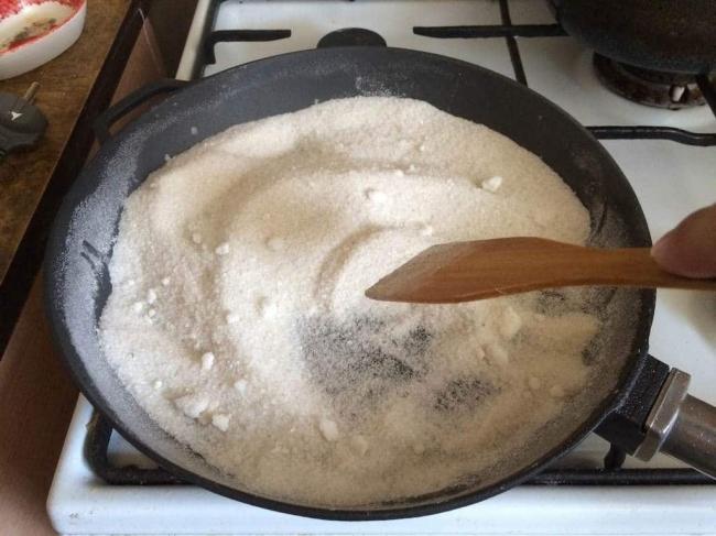 - Поставьте сковородку на средний огонь и держите до тех пор, пока соль не потемнеет (около 20-30 минут).