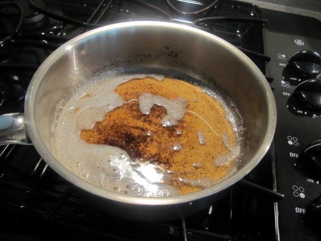 - Вылейте раствор с содой в сковороду, поставьте на плиту, дождитесь закипания.
