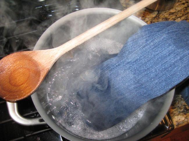 Кипячение цветных или черных джинсов приведет к потере пигмента. Поэтому такой обработке можно подвергать только изделия белого цвета.