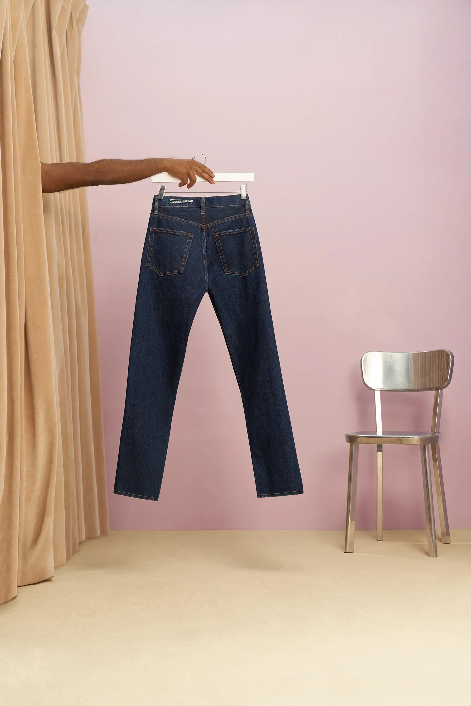 - Не вешайте джинсы на тонкие веревки и перекладины, чтобы не оставлять на ткани некрасивых заломов.