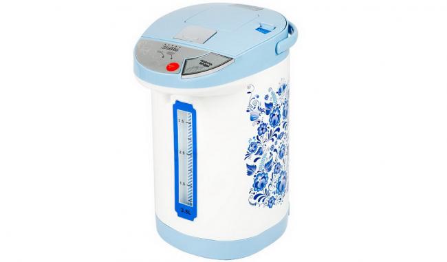 - Limme LU-299. Термопот объемом 3,3 л. Мощность прибора — 750 Вт, в режиме поддержания температуры составляет 30 Вт. Внутренняя колба выполнена из металла. Модель оснащена ручным и автоматическим насосом. Закрытая спираль нагревательного элемента. Корпус выполнен из металла с двойными стенками. Блокировка включения без воды и блокировка панели управления позволяют устройству работать в семьях с маленькими детьми. Эксперты отмечают его безопасность. Хозяйки выбирают этот прибор из-за современного дизайна. Цена около 3,5 тыс. руб.