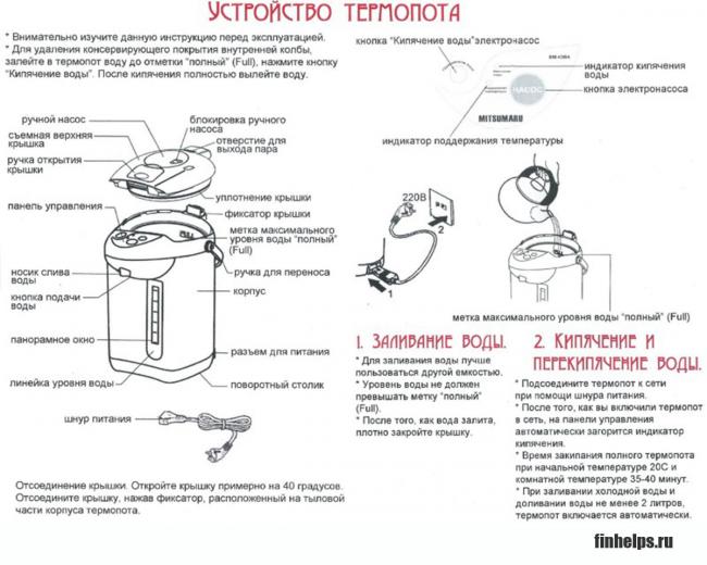 Изучите меню на корпусе термопота. Оно должно быть удобно, понятно и написано большими буквами на русском языке, чтобы даже ребенок мог легко во всем разобраться.