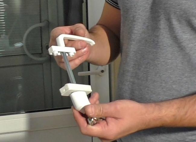 При закрывании створки деталь входит в паз, а специальная пружина фиксирует ее. Благодаря форме цилиндра он легко закрывает полотно, но не открывает обратно. Чтобы убрать запирающий механизм внутрь двери, используют специальную рукоять с поворотным механизмом. В данном случае необходимо установить ручку из пластика с каждой стороны.