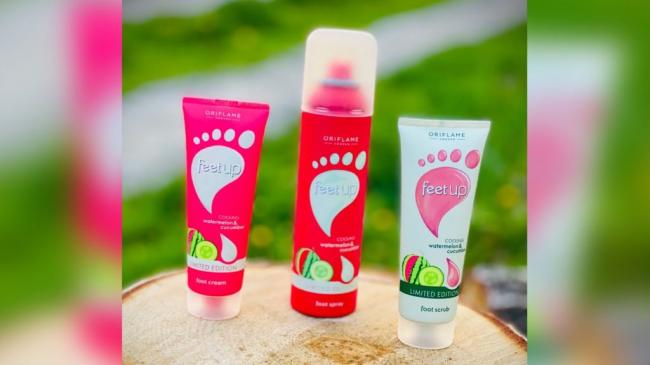 Охлаждающий спрей-дезодорант для ног Oriflame Feet Up с арбузом и огурцом.