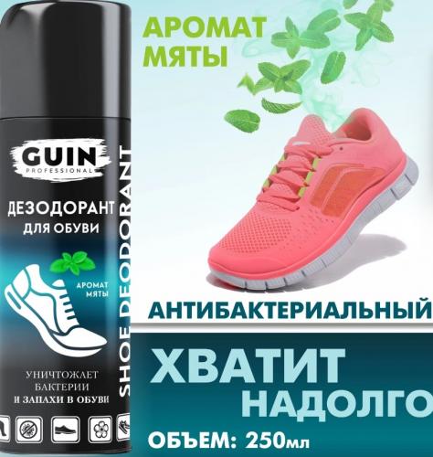 Лучший дезодорант для обуви – GUIN, представленный в объеме 250 мл. Этот бесцветный состав обладает антибактериальными свойствами и предназначен для использования на гладкой коже, замше, лакированной коже, нубуке и текстиле. GUIN обеспечивает эффективное устранение неприятного зaпаха и борется с бактериями, обеспечивая свежесть и комфорт. Срок годности составляет 1096 дней, что делает его долговечным средством для ухода.