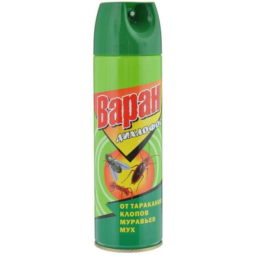 Дихлофос от блох «Варан» является антиблошиным мощным средством. Этот аэрозоль убивает блох, клопов или иных подобных кровососов. Такой инсектицид состоит из пиретроидов, которые образуют лимонный приятный аромат.
