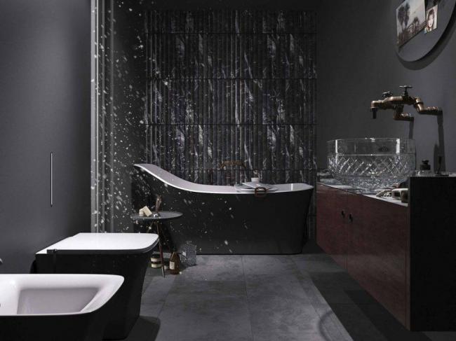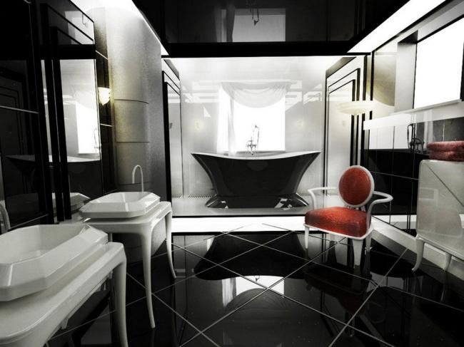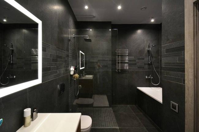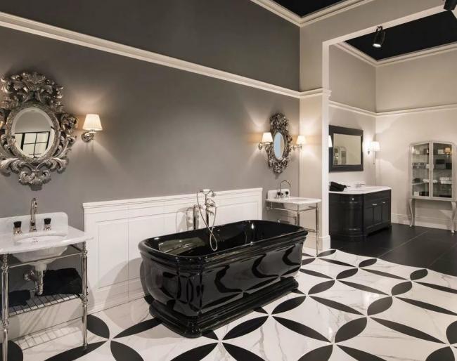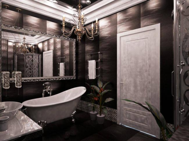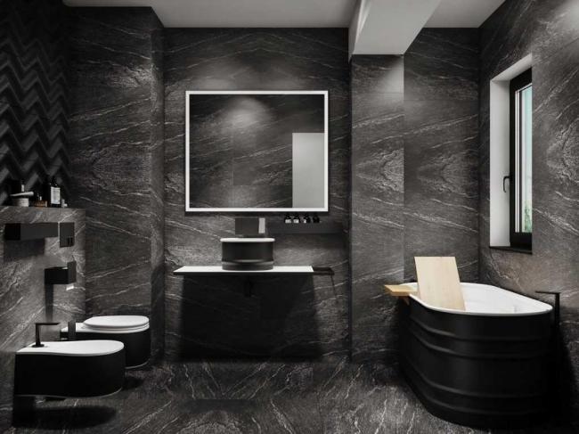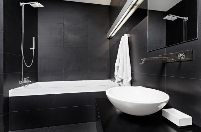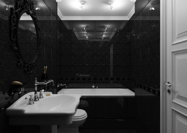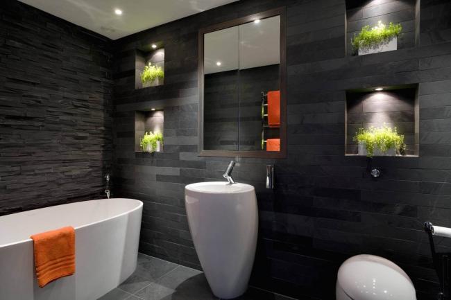Какой стиль подойдет для ванной комнаты в черном цвете?