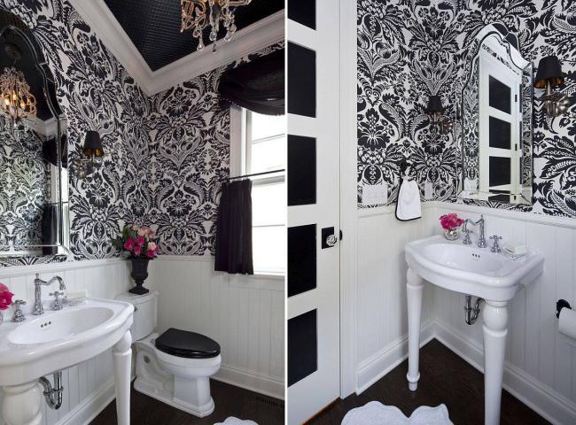 Интересно смотрится комбинирование цветов стен. Часто делают одну стену белой, а три — черными или наоборот.