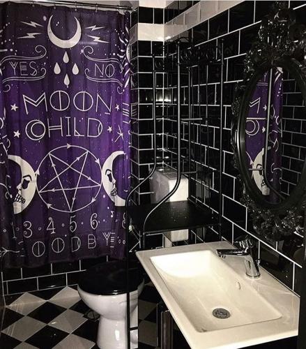 В готических интерьерах часто прослеживаются эксперименты с отделочными материалами и фактурами. Пластиковые панели могут сочетаться с кафелем, мозаикой, стеклом и металлом. Неоновое освещение также замечательно вписывается в подобную концепцию.