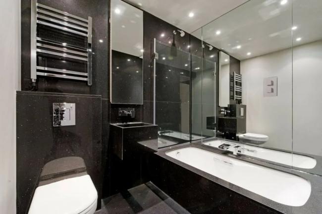 Но даже если ваша ванная комната огромных размеров, черный цвет все же требует особого обращения.