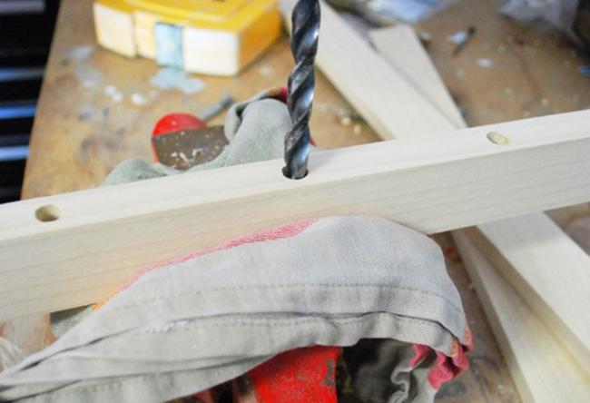 Внутри брусков каркаса следует просверлить равное количество отверстий
