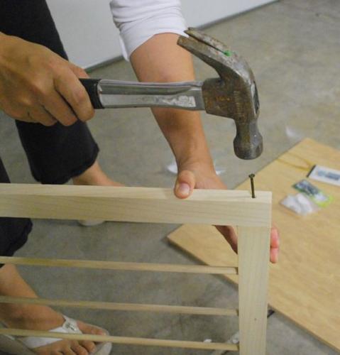 Необходимо сложить деревянные брусья конструкции наподобие рамы и соединить их гвоздями