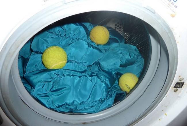 Универсальное решение — теннисные мячики, стирка с которыми устраняет пятна, распределяет наполнитель и бережет ткань от катышек.