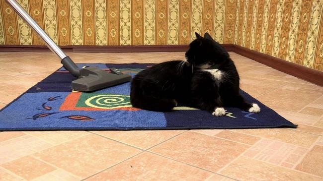 - Простой способ вычистить ковер, особенно с длинным ворсом, от вездесущей и въедливой шерсти животных – распыленный раствор 1:2. Поможет эффективно удалить вес мусор пылесосом. Да и сам ковер после этого станет мягче.