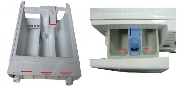 Как видно из этого обзора, в целом кюветки для порошка разных стиральных машин похожи друг на друга. Тем не менее, есть нюансы, незнание которых может повлиять на качество стирки, поэтому специалисты настоятельно рекомендуют перед запуском программы внимательно ознакомиться с инструкцией.