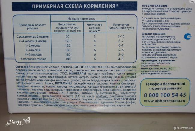 Ниже мы приводим рекомендованный средний дневной объем смеси для кормления