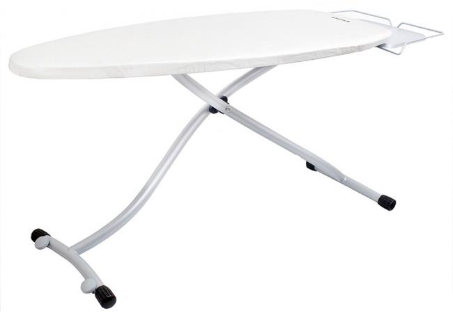 Популярная модель гладильной доски, ножки которой оснащены колесиками – можно перемещаться даже из комнаты в комнату, не таская тяжелое устройство на себе.