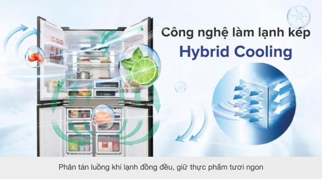 – For Sharp refrigerators equipped with a dual cooling system called Hybrid Cooling, with this technology the company will equip an aluminum plate in the rear position, inside the refrigerator. When operating, the aluminum plate will absorb heat, the temperature will drop to approximately 0 degrees Celsius, the aluminum plate will radiate cold air to every corner, helping the food to be cooled evenly and avoiding the risk of dehydration in the food. Products.