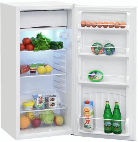Следующим в нашем списке идет холодильник NORDFROST NR 404, предназначенный для маленькой квартиры или гостиничного номера. Он невысокий, поэтому может использоваться и как тумба. Морозильная камера у холодильника небольшая, и температура в нем понижается до –6°C, но для напитков этого достаточно. Высоту полок можно регулировать, что позволяет хранить в холодильнике большие фрукты, например, арбуз или дыню.