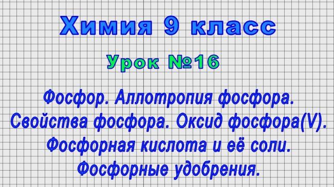 Химия 9 класс (Урок№16 – Фосфор. Аллотропия фосфора. Свойства фосфора. Оксид фосфора(V).)