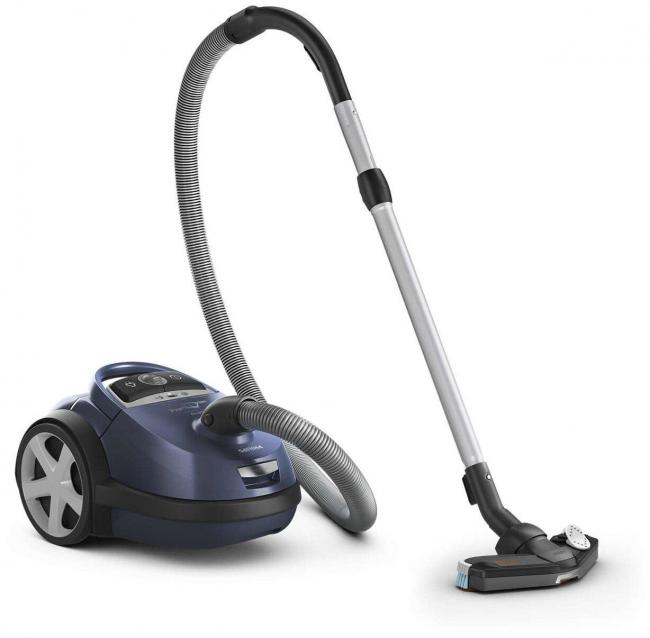 Индикатор оповестит о заполненном пылесборнике. В комплекте идут 5 сменных мешков, поэтому не придётся их отдельно покупать. Новейшие фильтры HEPA обеспечивают до 100% фильтрации бактерий и мелких пылинок. На корпусе можно отрегулировать мощность, если шерсть или волосы не собираются. Универсальная насадка Tri-Active благодаря щёткам по всему периметру бережно собирает грязь с гладких полов и эффективно собирает ворсинки. Мягкий бампер исключает повреждения, а 2 остальные насадки подходят для труднодоступных мест и мебели.